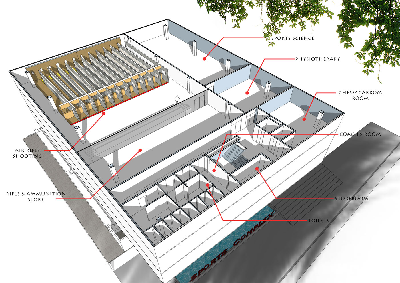 "Life in Balance" by BBMP(Bangalore Mahanagar Palika)is the slogan for this project, from which all the design concepts are generated. The site is situated in a prime location in Bangalore for the government housing all the sports activities under our roof with professional outlook to offer quality sports center for the Citizens, housing all the top sports activities such as swimming pool, Shooting, Badminton, Table tennis, Gym etc. The entire building was built as a Griha rated green building with sustainable materials.