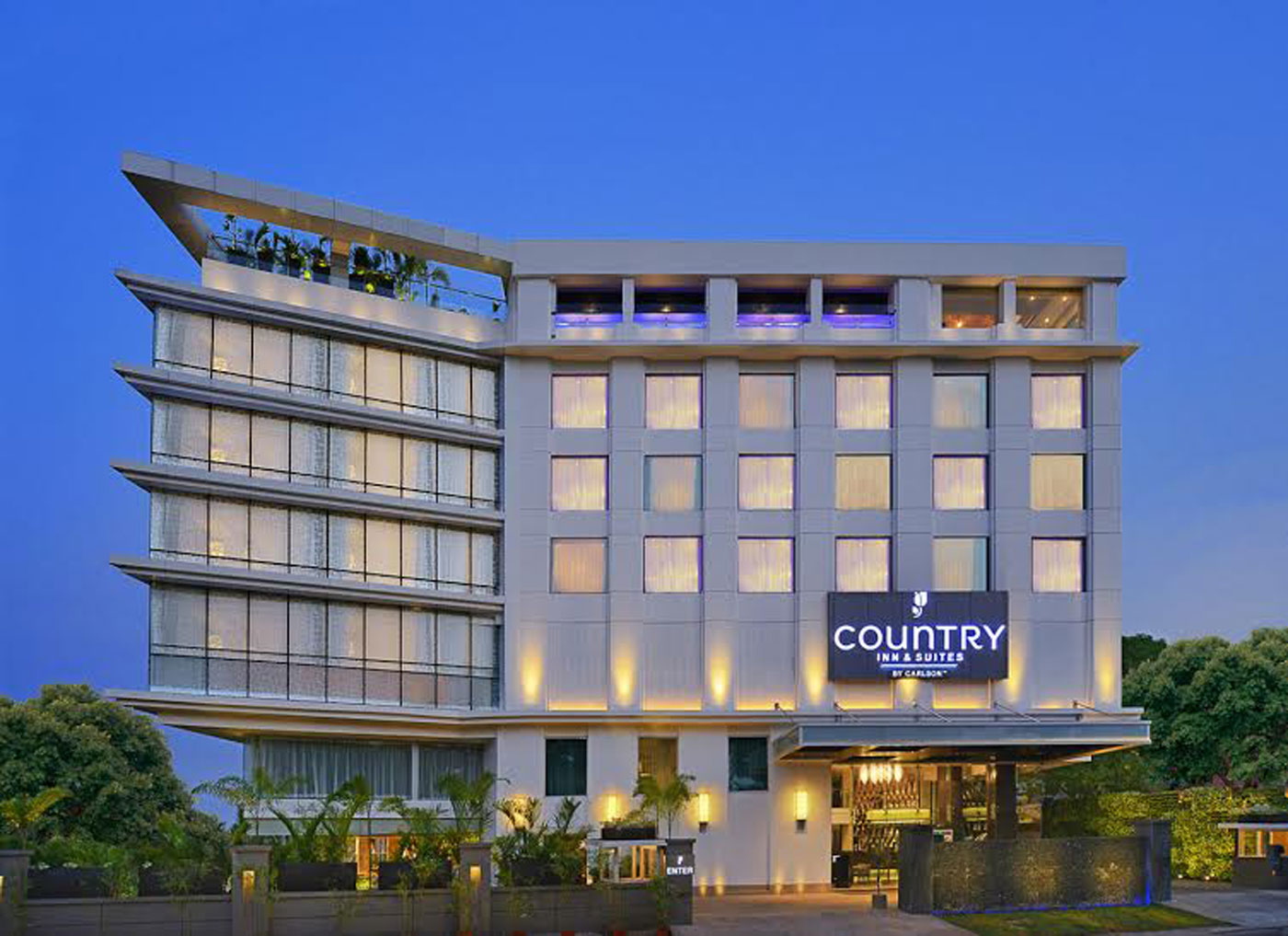 A corner site luxury hotel that follows the Gen 4 concept of Carlson Residor, Country Inn is the 60 key property located in Manipal. The double-height lobby adds to the grandeur of the hotel and the hotel gives a tranquil retreat in the cosy and comfortable rooms or suites. The rooftop pool bar is a perfect blend of formal and informal with the caricature wall bringing in a casual effect. The glass facade creates a separation between the indoor and outdoor seating, maintaining a visual connect to the pool from inside. Well designed structures for natural lighting provides visibility for the occupants and enhancing architectural forms rather than flooding a space with light.