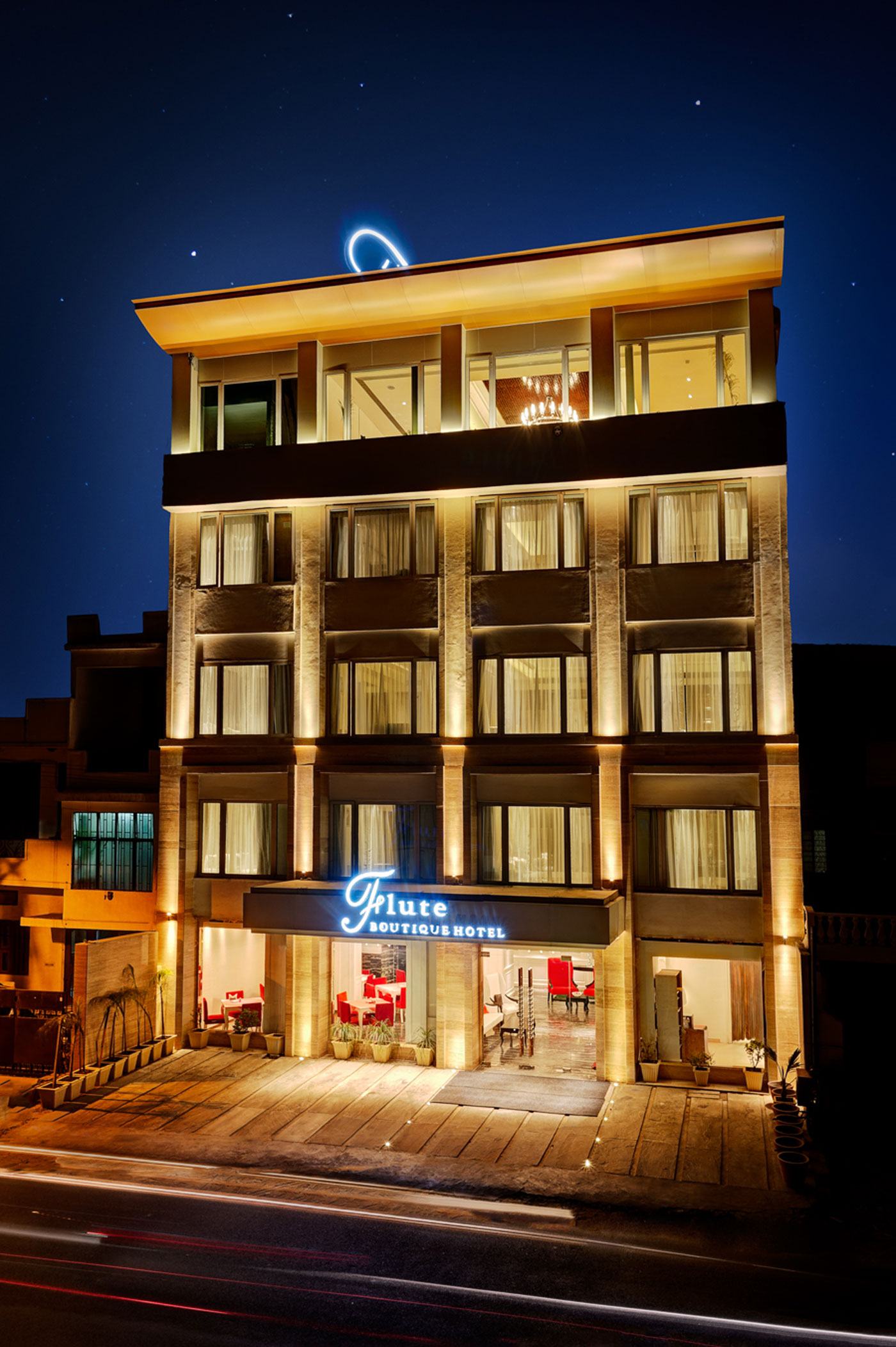 Awarded as India's one of the best boutique hotel, The Flute is a 30 key project located in Jaipur. The flute is inspired by crafting the local designs with a touch of luxury and comfort. The transformational designs in structures with elegant lighting in the rooms and suites bring together the blend of warmth and cosiness to the guests. The design elevates rejuvenating stay cocooned in the luxury of peace.